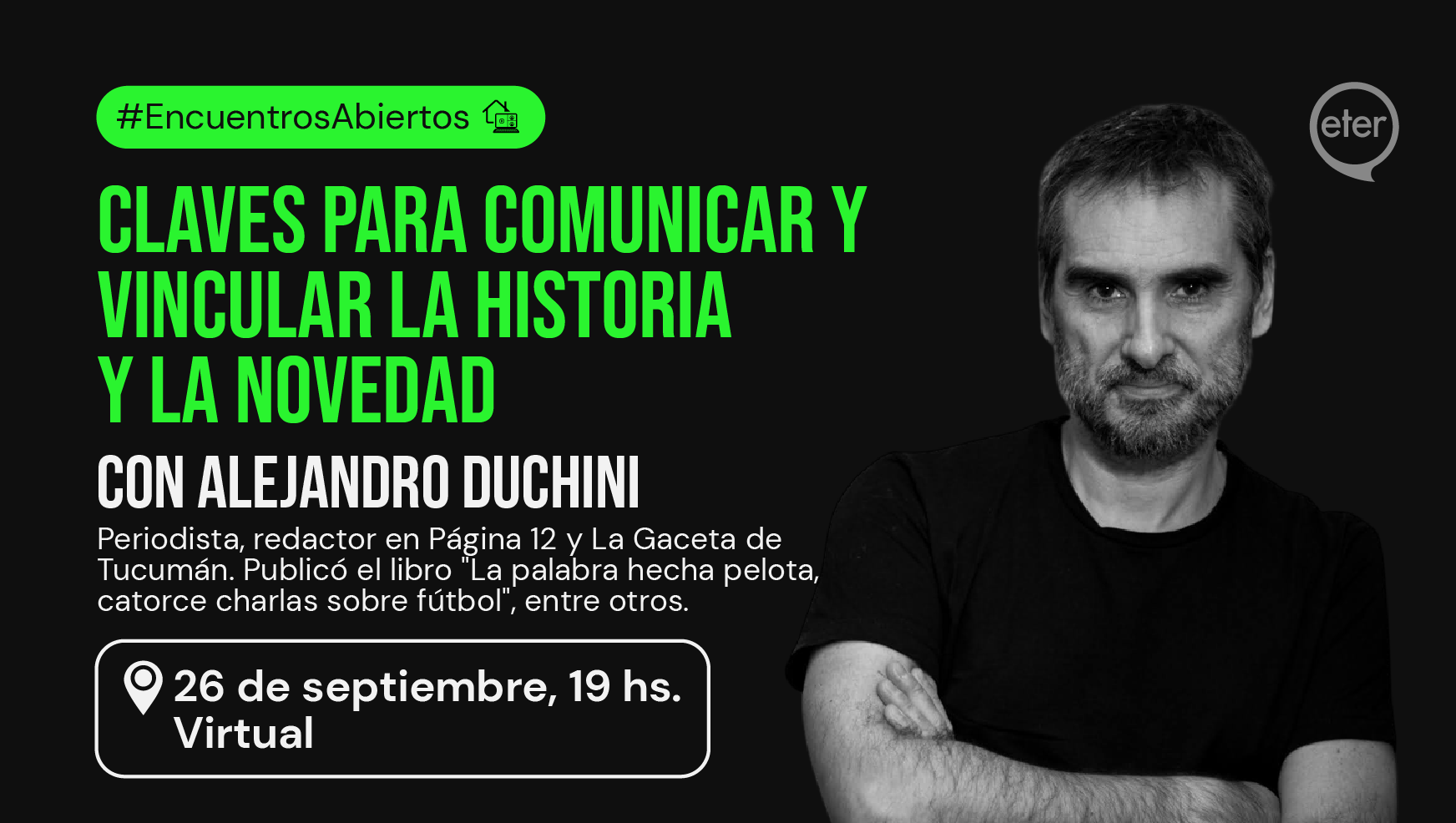 Alejandro Duchini, periodista, redactor y autor de los libros Mi Diego: Crónica sentimental de una gambeta que desafió al mundo y La palabra hecha pelota: catorce charlas sobre fútbol.