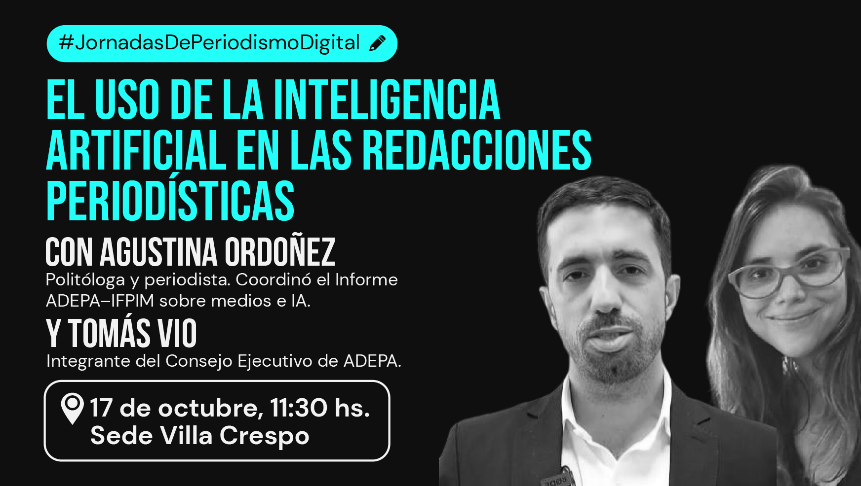 Este viernes 17 de octubre tendrá lugar la segunda y última de las Jornadas de Periodismo Digital. Nos visitarán desde la Asociación de Entidades Periodísticas Argentinas (Adepa) para conversar sobre el uso de IA en las redacciones periodísticas, a partir del informe La IA reconfigura el ecosistema informativo argentino.