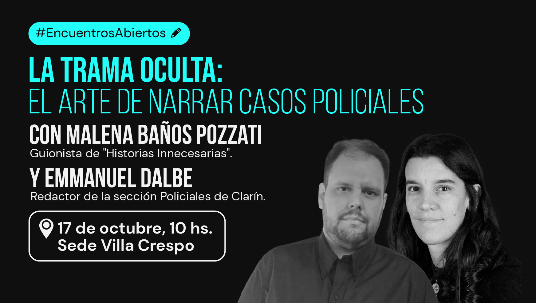 ¿Qué estrategias podemos aprovechar lxs periodistas a la hora de crear guiones? Malena Baños Pozzati, guionista de Historias Innecesarias, y Emmanuel Dalbe, redactor de Clarín, darán pistas para divulgar casos policiales en formato documental: bocetar una primera idea, manejar documentos y datos, y guionar periodísticamente.