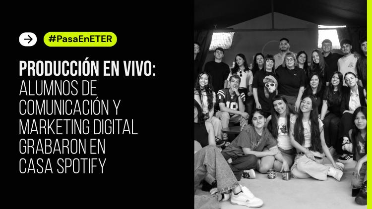 Estudiantes de primer año de la carrera de Comunicación y Marketing Digital de ETER tuvieron la oportunidad de grabar un podcast en Casa Spotify, acompañados por las docentes de Producción de Contenidos Digitales, Lucila Juan y Eugenia Sproatt.