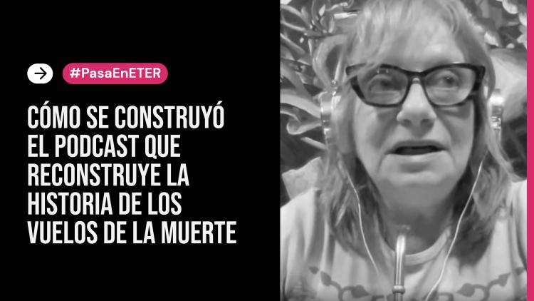 La periodista e investigadora Miriam Lewin -sobreviviente de la ESMA- y la productora Paloma Navarro participaron de un encuentro en ETER para compartir el proceso creativo del podcast Skyvan: los vuelos de la muerte. El proyecto surgió tras una extensa investigación periodística que derivó en la condena a pilotos de la dictadura, y aborda la reconstrucción histórica desde un relato sonoro que combina archivo, crónica y experiencias personales.